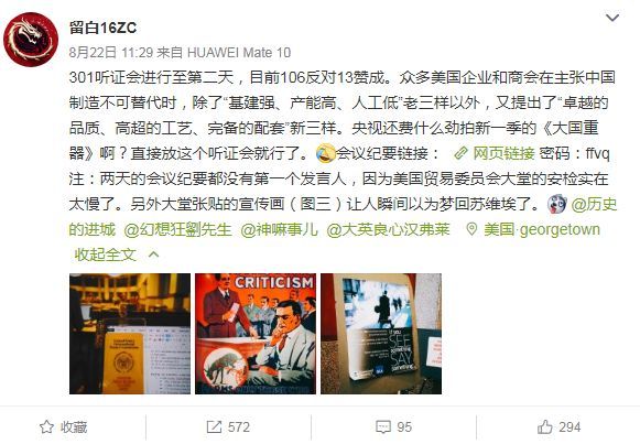 这几天,8月20日、21日,美国贸易代表办公室在主持听证会,主题是针对价值2000亿美元中国商品的关税的征税名单,向企业界征求意见。