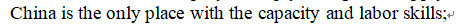 中国完整的产业链可以满足制造的需求,中国强大的工业产能能够满足市场需求,中国熟练的技术工人可以提供高质量的产品,而且还比较便宜。
